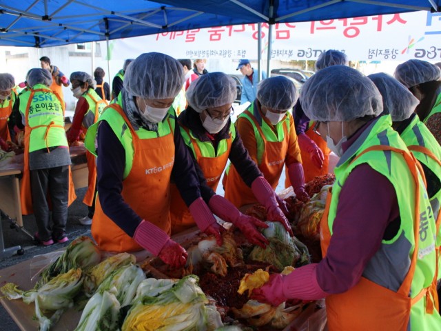 강릉시사회복지협의회 좋은이웃들 자원봉사대원들과 KT&G가 함께 김장나눔 행사를 하였습니다.