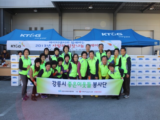 내 용 : KT&G와 강릉시사회복지협의회 좋은이웃들자원봉사들과 함께 김치를 담구어 어려운 이웃들에게 배분하였습니다.