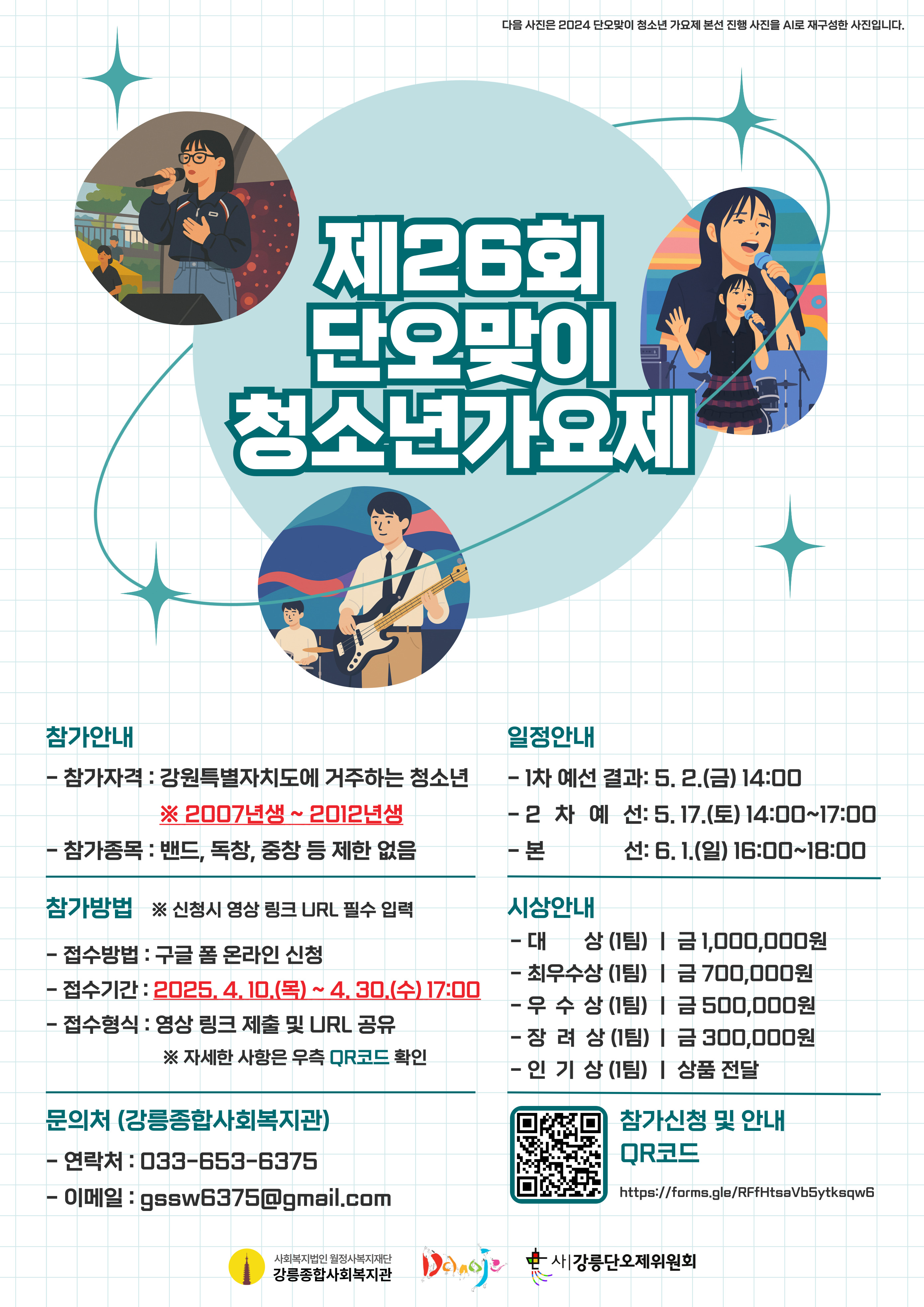 강릉종합사회복지관에서 제26회 단오맞이 청소년 가요제를 진행합니다.