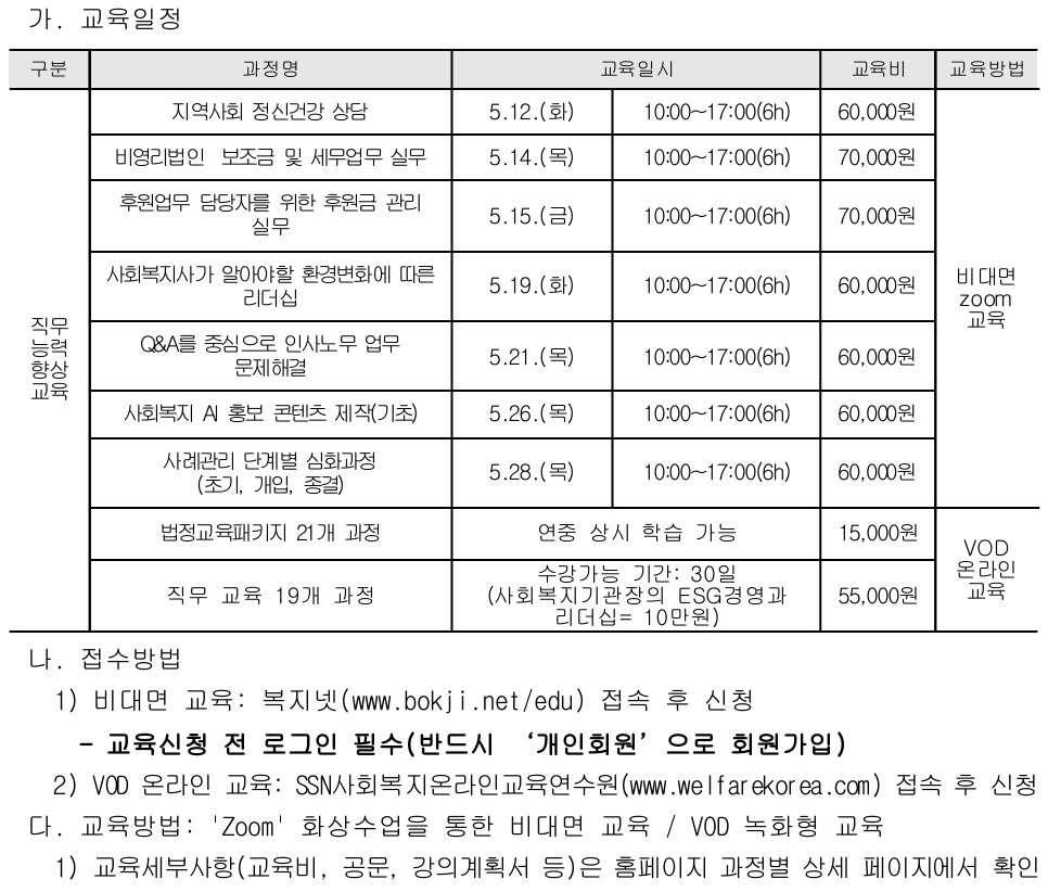 (한국사회복지협의회) 2026년 5월 직무능력향상교육 안내