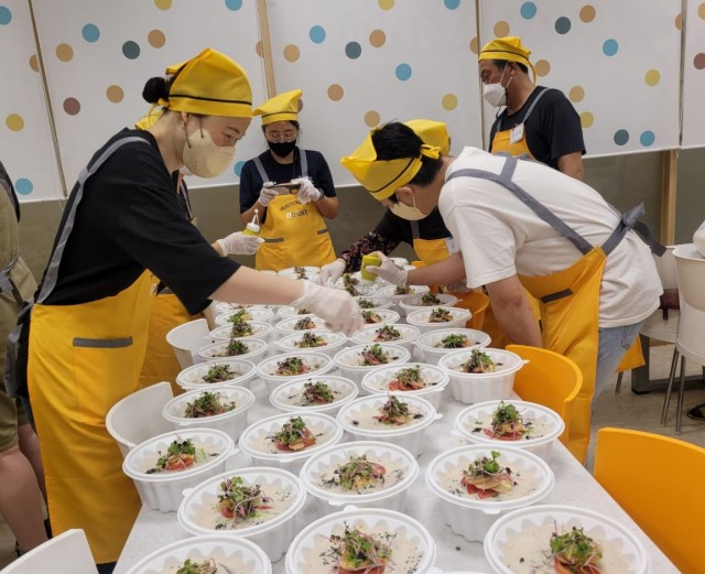 - 내용 : 이마트와 함께 피코크제품을 활용한 도시락(도토리묵콩국수, 소불고기, 총각김치)을 제작하여 강릉시 소외계층에 전달