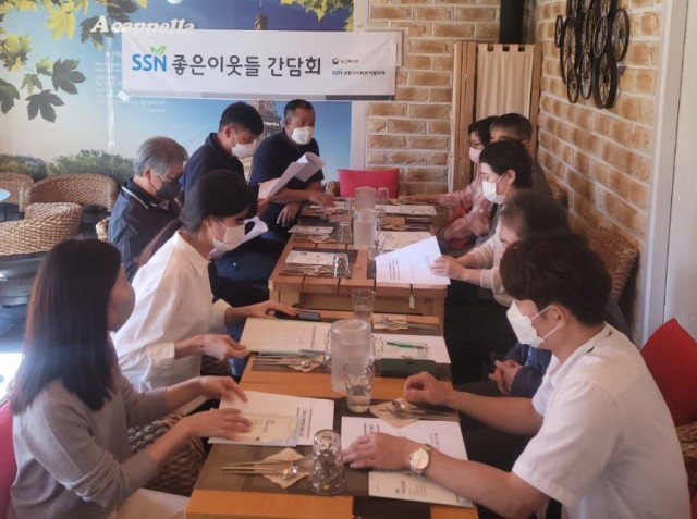 - 내용 : 좋은이웃들 봉사대장, 읍면동지역사회보장협의체 위원장 및 복지담당 공무원과의 간담회를 통해 강릉시 복지사각지대 해소를 위한