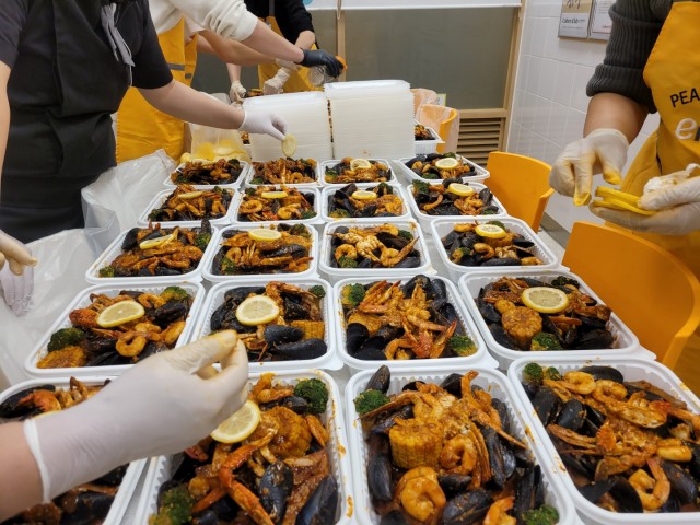 - 내용 : 이마트와 함께 피코크제품을 활용한 도시락(바베큐폭립,하와이안볶음밥,배추김치)을 제작하여 강릉시 소외계층에 전달