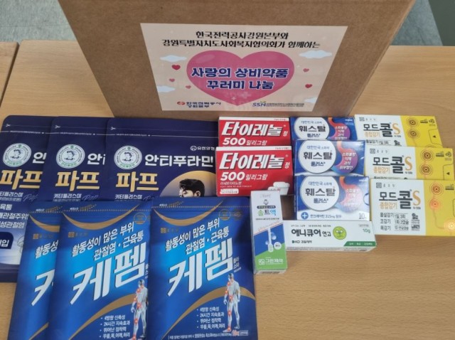 5만원상당의 상비약품꾸러미(해열진통제, 소화제, 파스, 종합감기약, 소독약, 상처연고)를 제작하여 전달하였습니다.